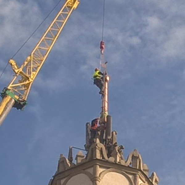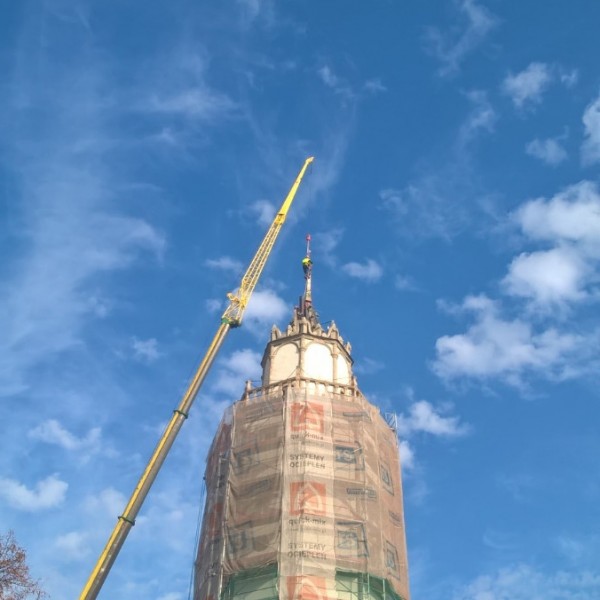Wieża Ratusza w Paczkowie - montaż iglicy